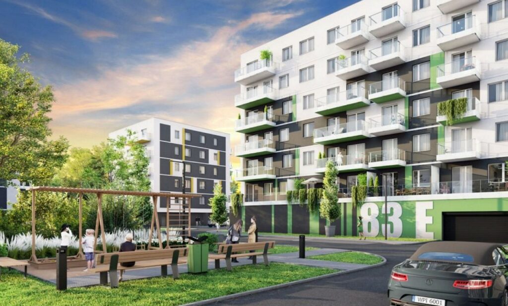 Nowoczesna architektura, wysoki standard części wspólnych, zielone tereny, plac zabaw oraz garaż podziemny.