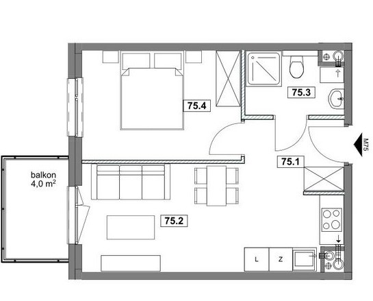 Mieszkanie ma dwa pokoje – wygodny salon z aneksem kuchennym, z którego jest wyjście na balkon, gdzie można odpocząć na świeżym powietrzu. Duża sypialnia oferuje miejsce na pojemną szafę. Do tego jest łazienka oraz przedpokój z dodatkową przestrzenią na szafę, co ułatwia przechowywanie i utrzymanie porządku. Układ jest prosty i funkcjonalny, idealny na start lub dla pary.